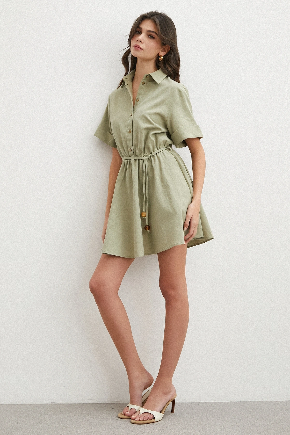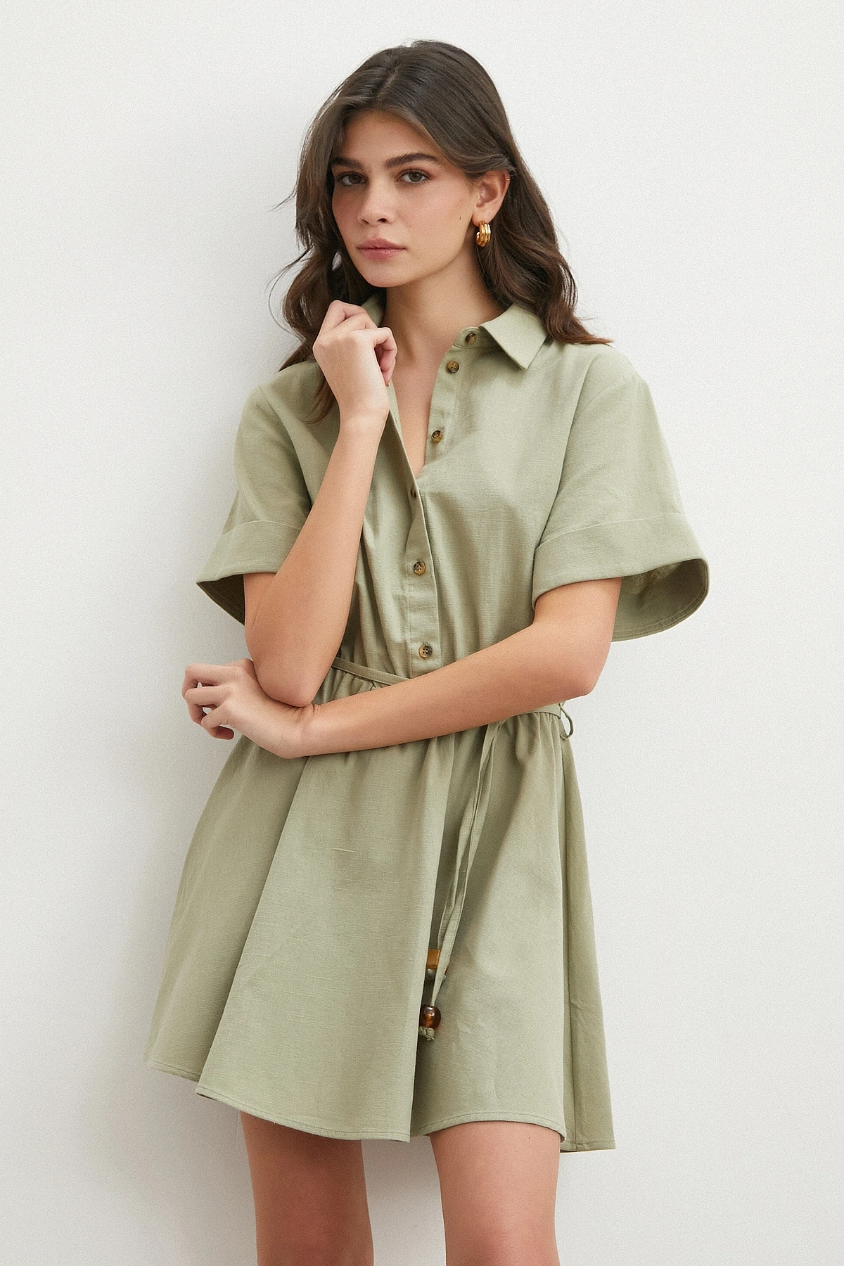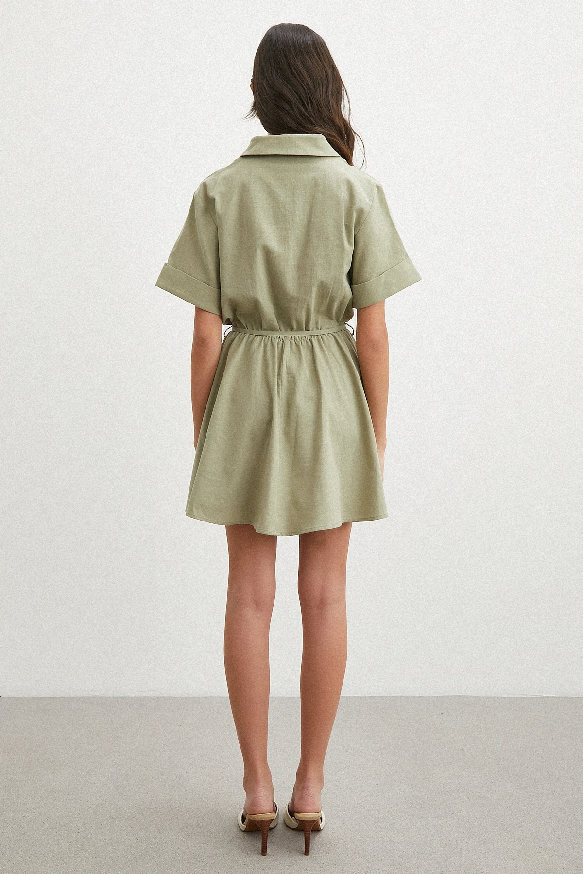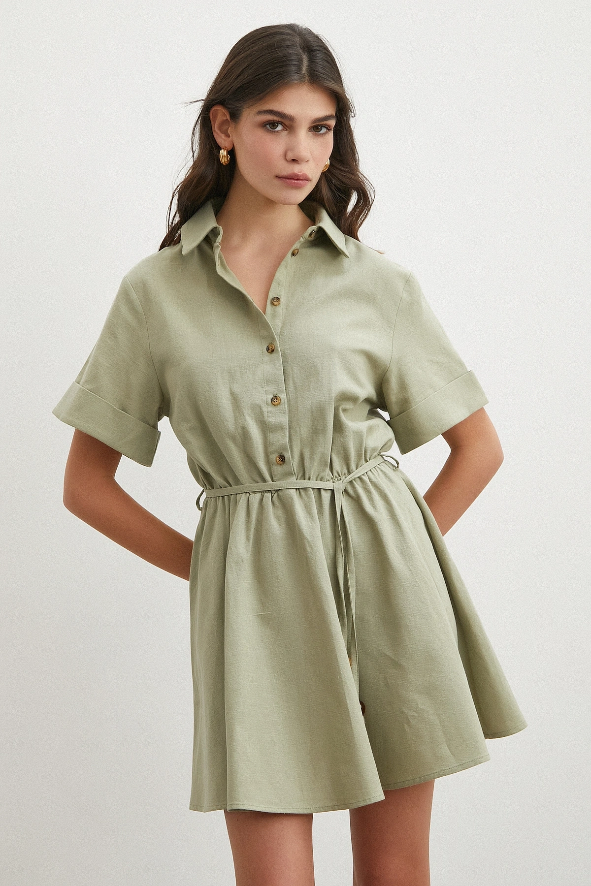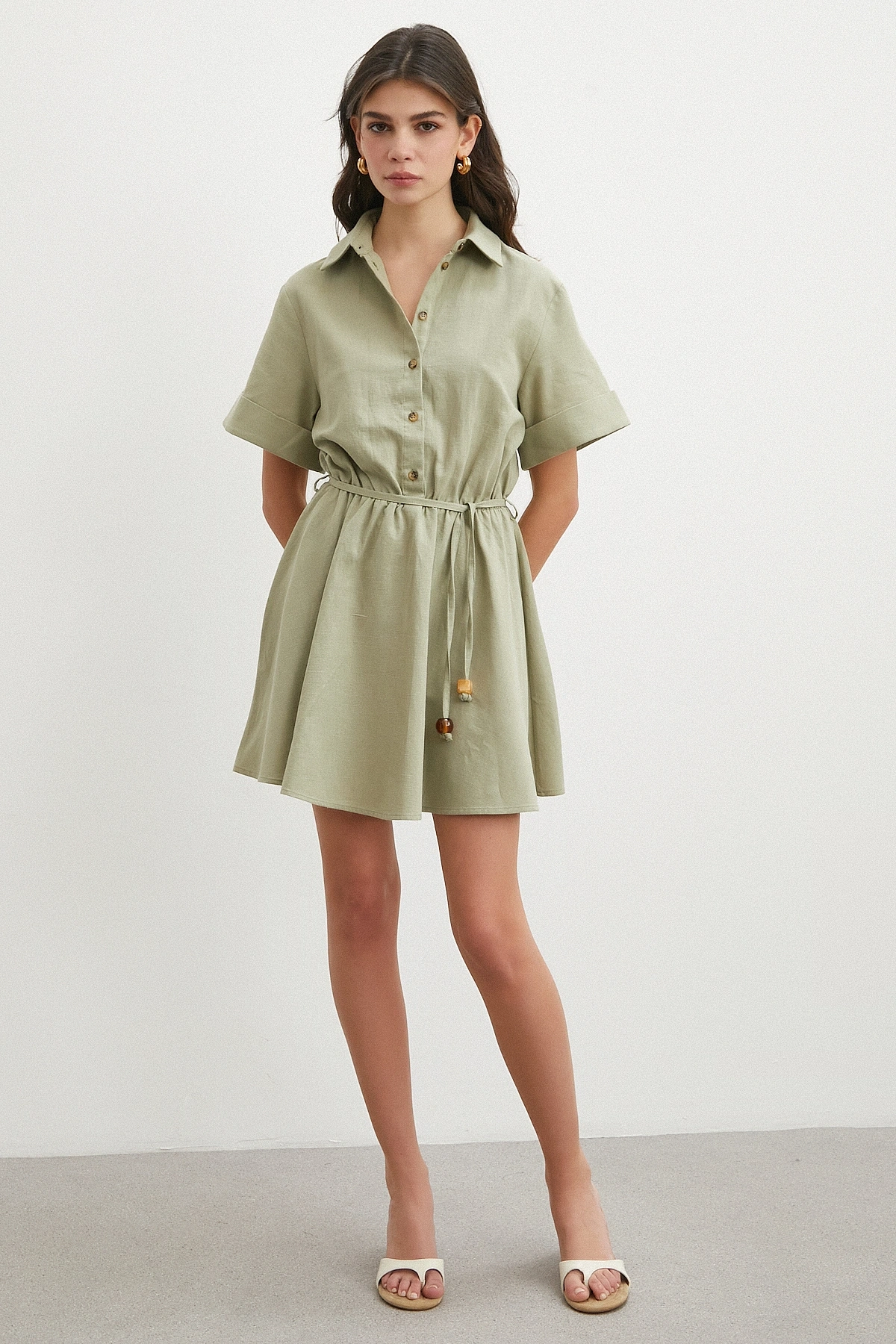 • Belden Bağlamalı Gömlek Yaka Yazlık Elbise