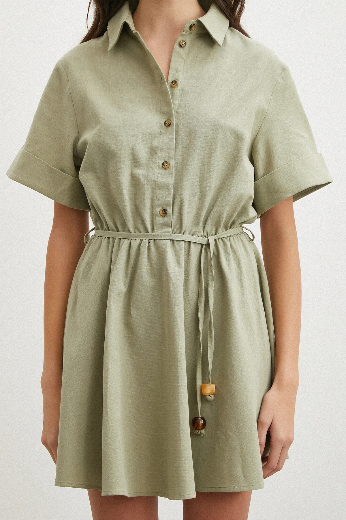 Belden Bağlamalı Gömlek Yaka Yazlık Elbise