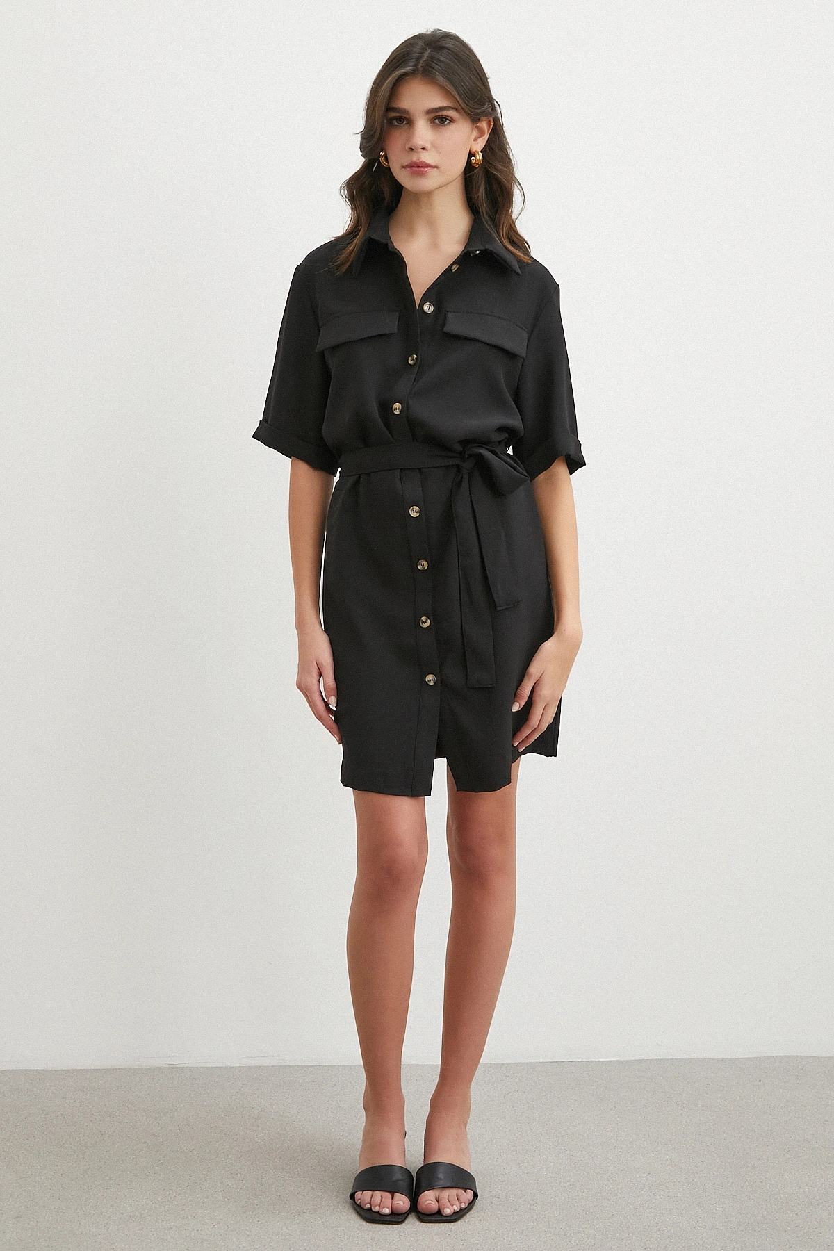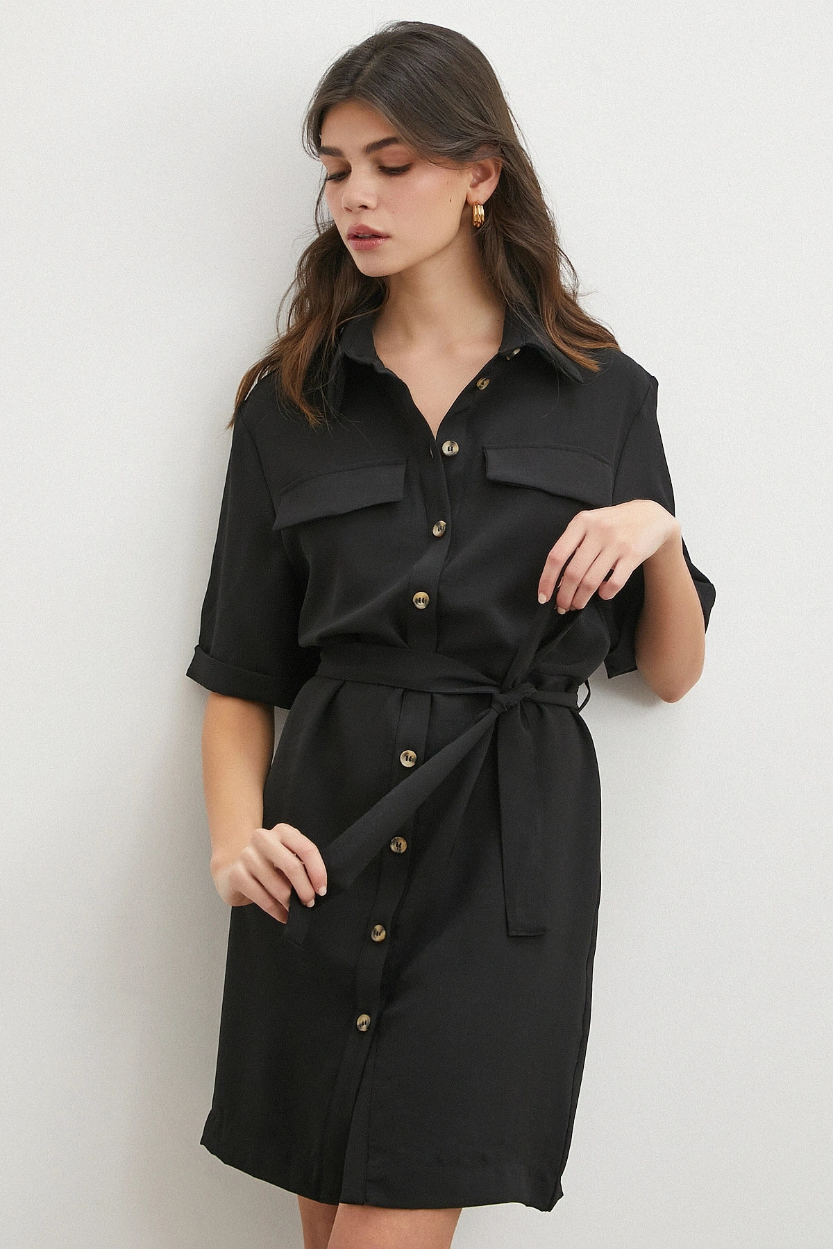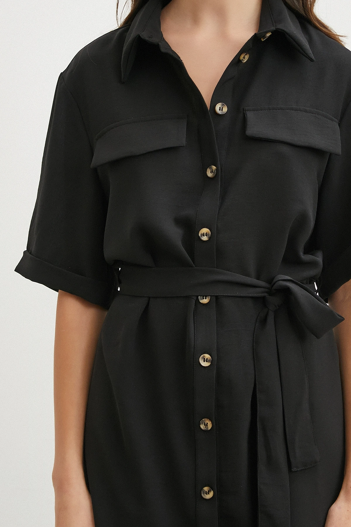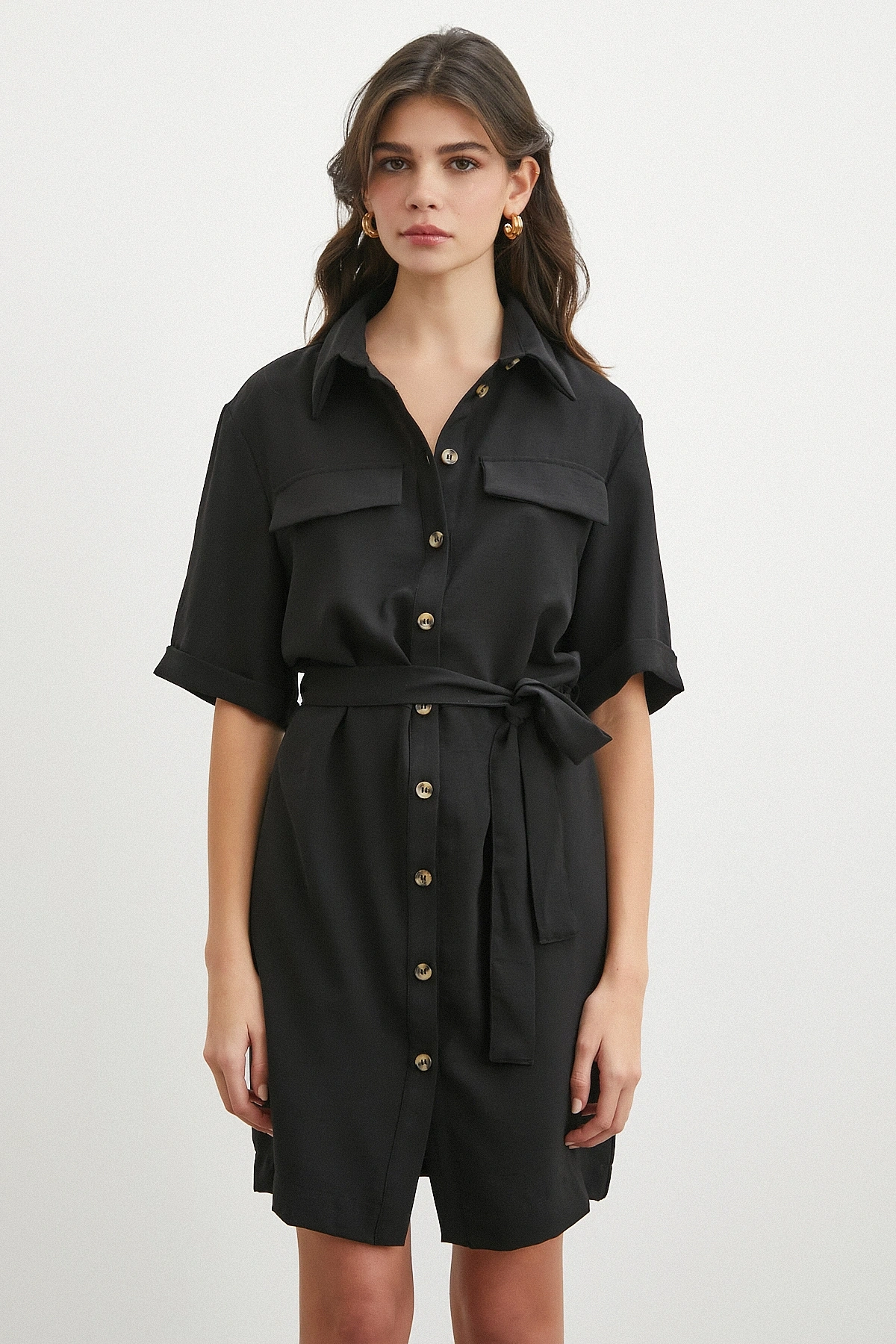 • Siyah Safari Serisi Gömlek Elbise