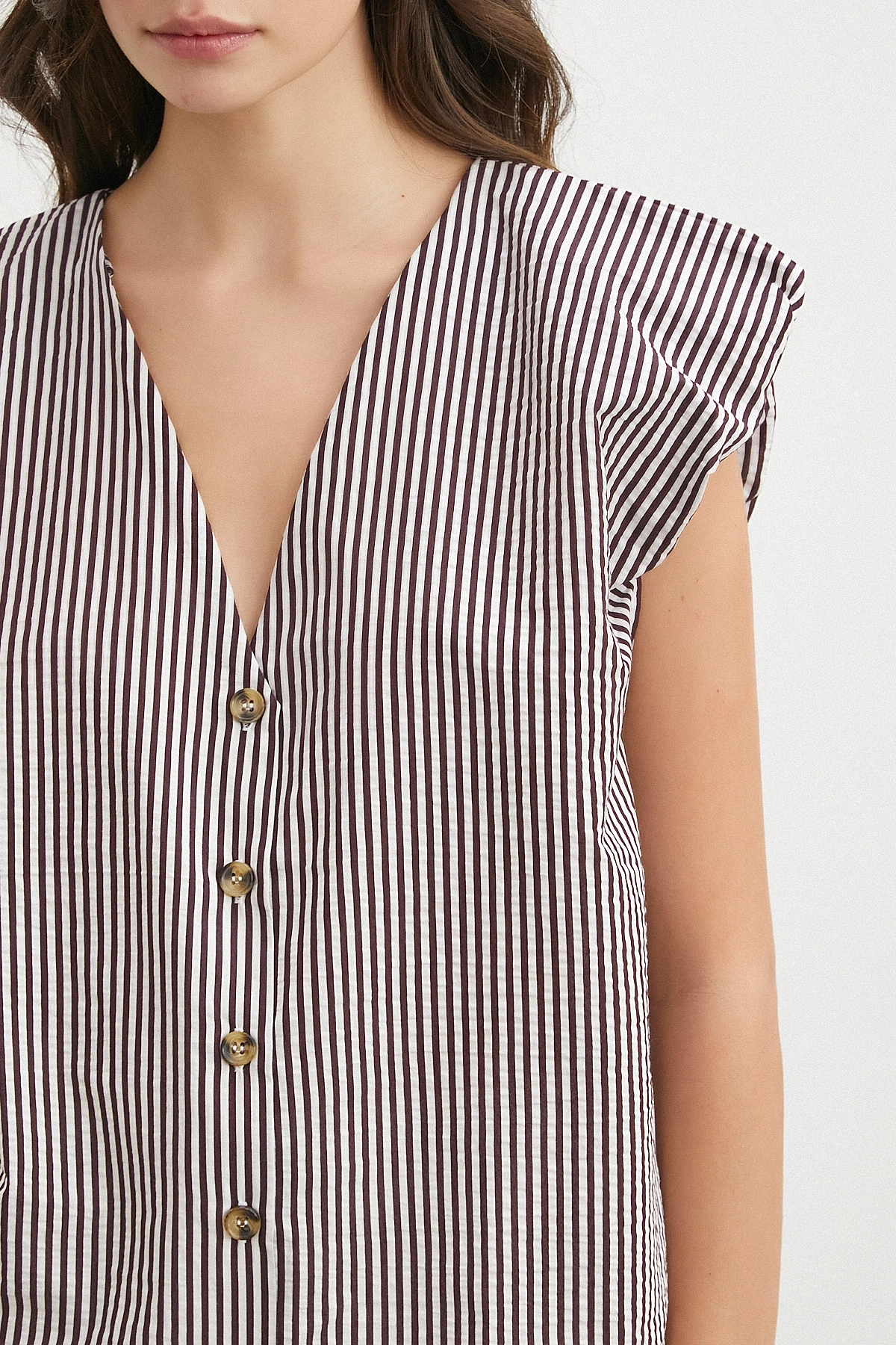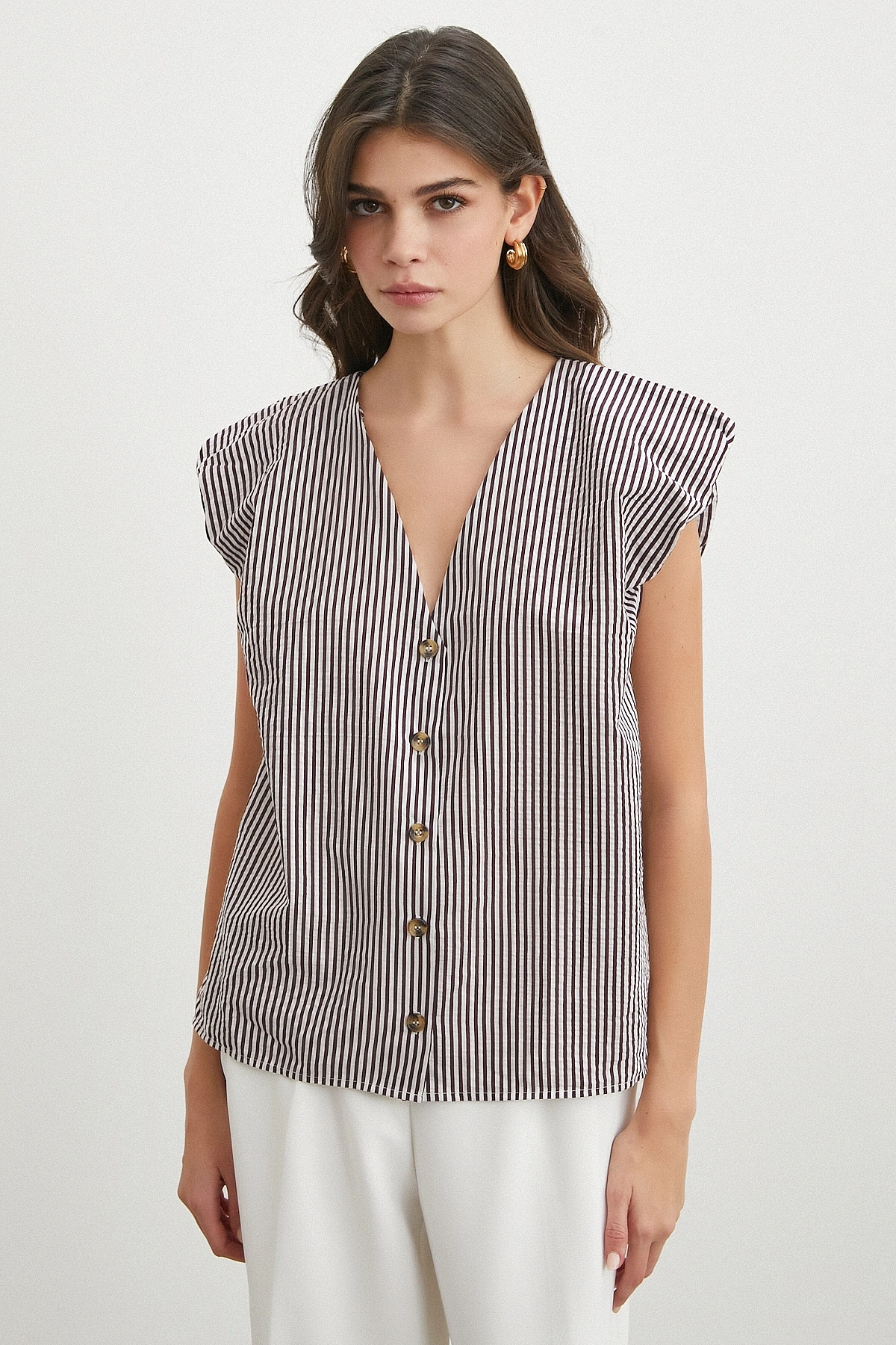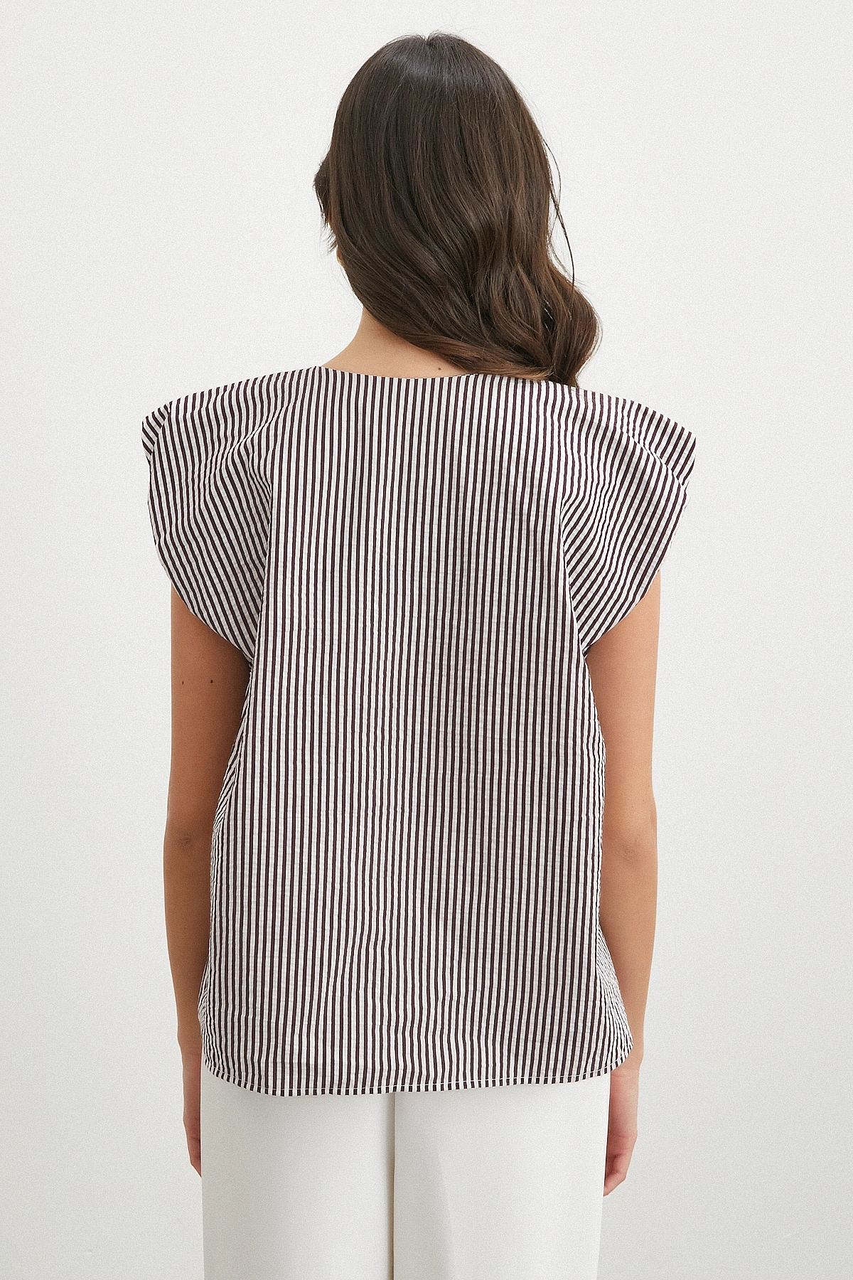 • V Yaka Çizgili Vatkalı Kolsuz Bluz