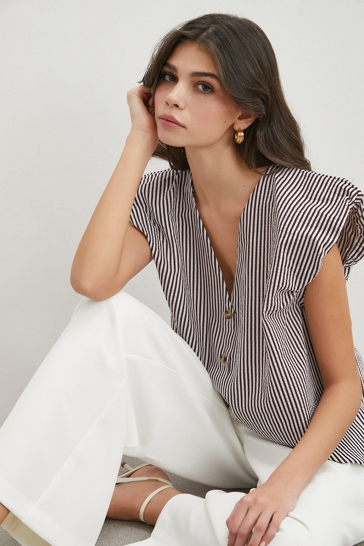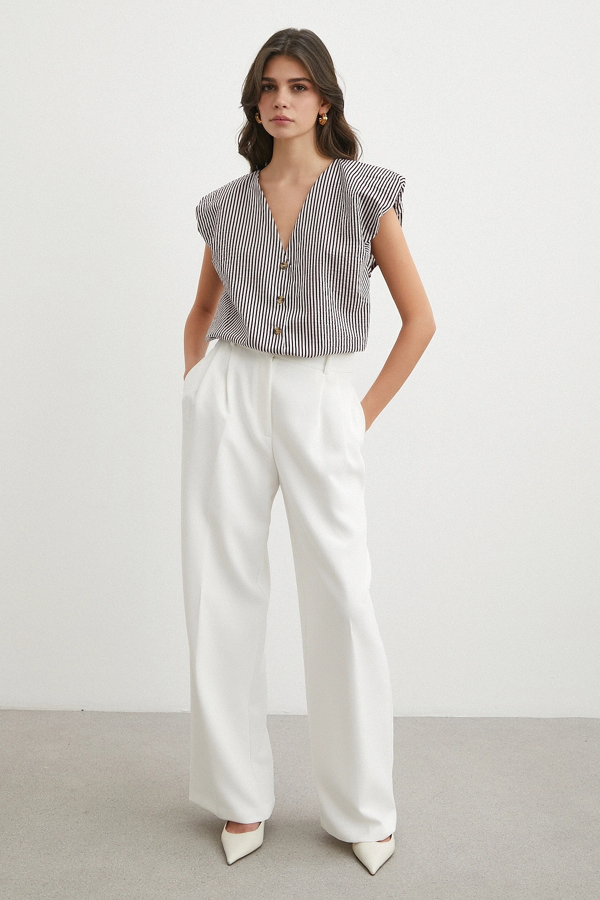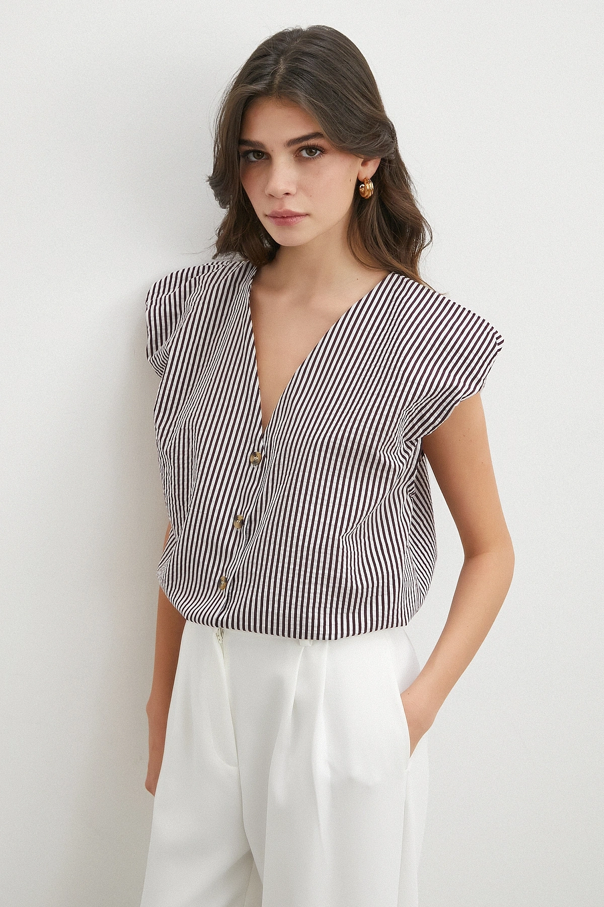 • V Yaka Çizgili Vatkalı Kolsuz Bluz